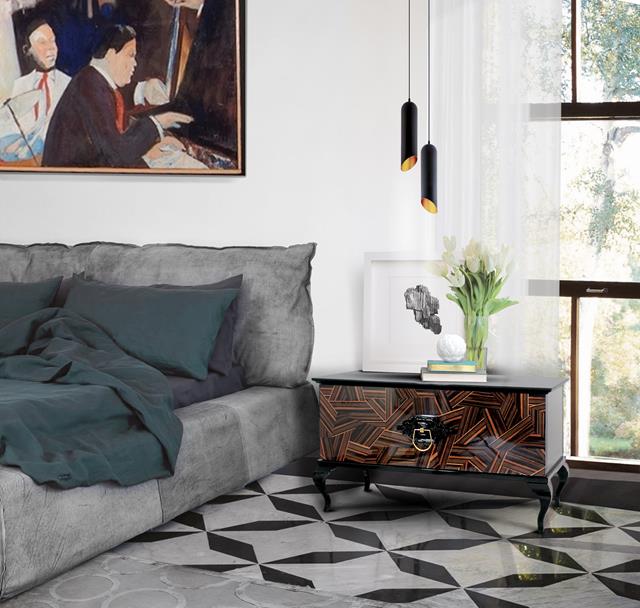 The Guggenheim nighstand with a patchwork surface is not only a timeless design piece, but speaks tons to the environment.